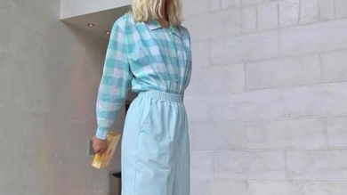 薰衣草般的紫色象征着浪漫与柔情,仿佛整套衣服都散发着迷人的香气。